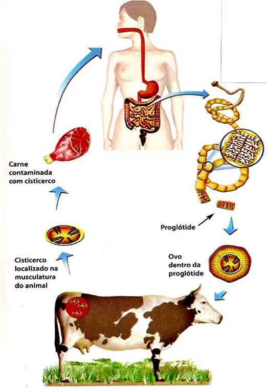 O ser humano ao comer uma carne mal cozida está consumido os cisticerco, estes iriam se alojar no intestino e se transformar em uma tênia adulta. Em alguns casos esses cisticerco se alojam na musculatura ou no cérebro. Na musculatura causa-se poucos problemas, já no cérebro pode causar uma doença conhecida como cisticercose humana, que podem provocar convulsões semelhantes as da epilepsia.